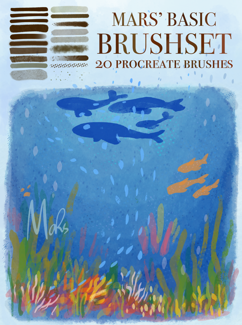 This set of 20 procreate brushes comes with a variety of textures and shapes that are staples in my personal collection- including my favorite line art brush, background textures, coloring brushes, and a customizable signature stamp brush. I created all of these brushes with the goal that every artist can find easy use in them.